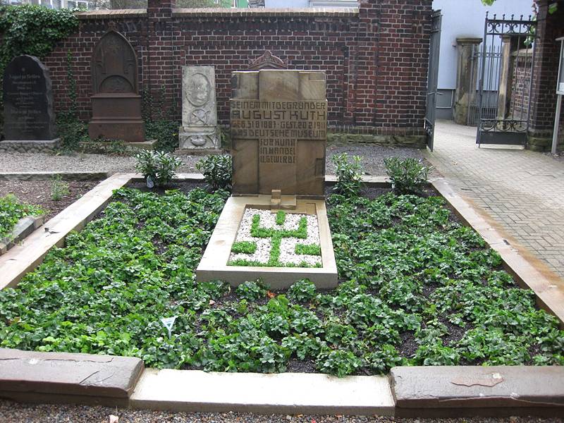 Ein weiteres außergewöhnliches Grabdenkmal ist der Stein für den sehr früh verstorbenen August Kuth, Mitbegründer des Deutschen Museums für Kunst in Handel und Gewerbe, München, und Assistent am Museum Folkwang, ein Entwurf von J. L. Mathieu Lauweriks, ebenfalls im Auftrag von Karl Ernst Osthaus.